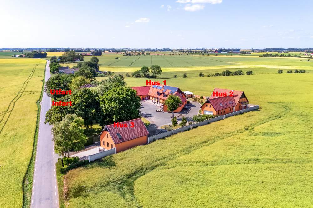 Förutom det privata terrassen finns det många andra sittgrupper i parken och övriga trädgården. Damm med fiskar vilken inte är inhägnad. Gung/klätterställning.